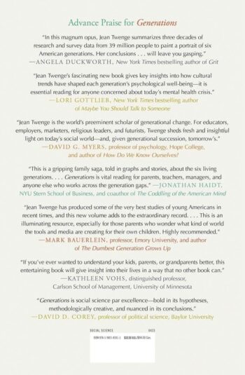 Professor of psychology and “reigning expert on generational change” (Lisa Wade, PhD, author of American Hookup), Jean Twenge does a deep dive into a treasure trove of long-running, government-funded surveys and databases to answer these questions. Are we truly defined by major historical events, such as the Great Depression for the Silents and September 11 for Millennials? Or, as Twenge argues, is it the rapid evolution of technology that differentiates the generations?